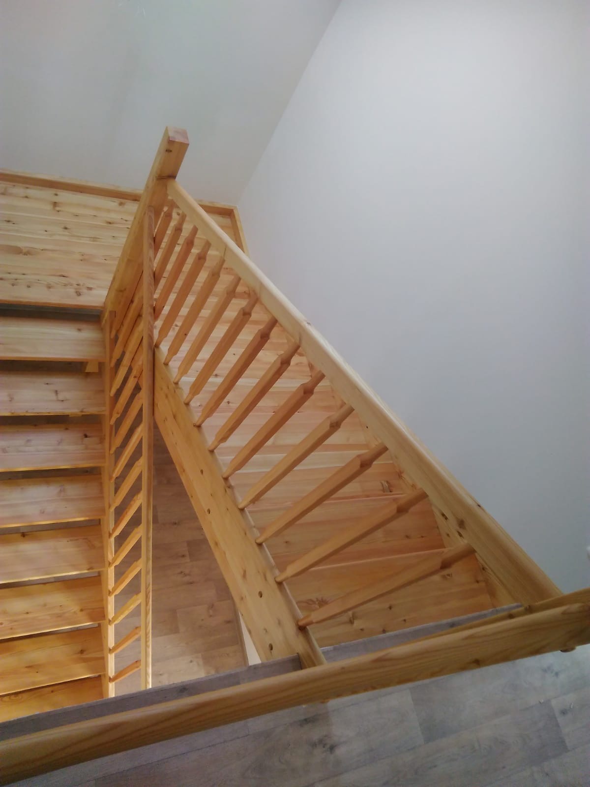 Dřevěné zábradlí dodává modernímu interiéru eleganci a zároveň zajišťuje bezpečnost při pohybu po schodišti.